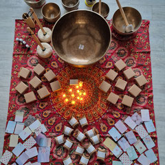 In der Kombination mit reinen ätherischen Ölen, Orakelkarten und Kraftsteinen biete ich eine einzigartige Form der Klang Arbeit an.
